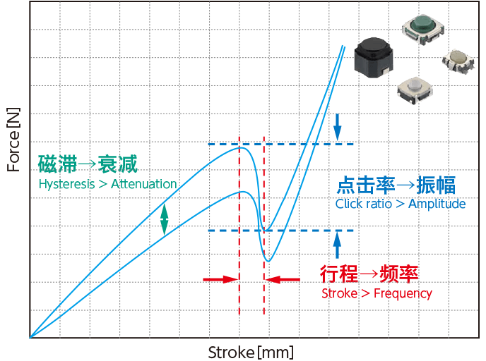 下面介绍一个将机构设计与力反馈技术结合在一起的案例。本公司正在开发一项通过力反馈来再现机械元器件相同触感的技术,将机构形成的触感进行量化提取,再通过电磁感应技术将其再现。将丰富的触觉经验知识与执行器技术融合在一起,可随意创造出“按压”、“转动”、“滑动”时想要的触感。