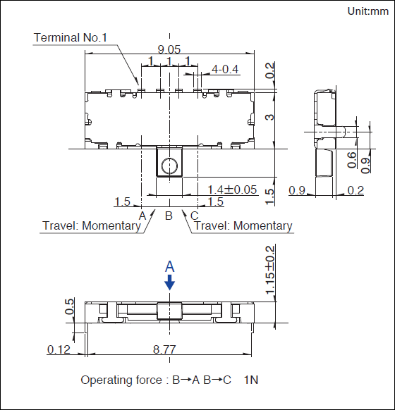 - 开关操作时,如果施加规定以上的负载,开关将有被损坏的可能。请注意不要在开关上施加规定以上的力。