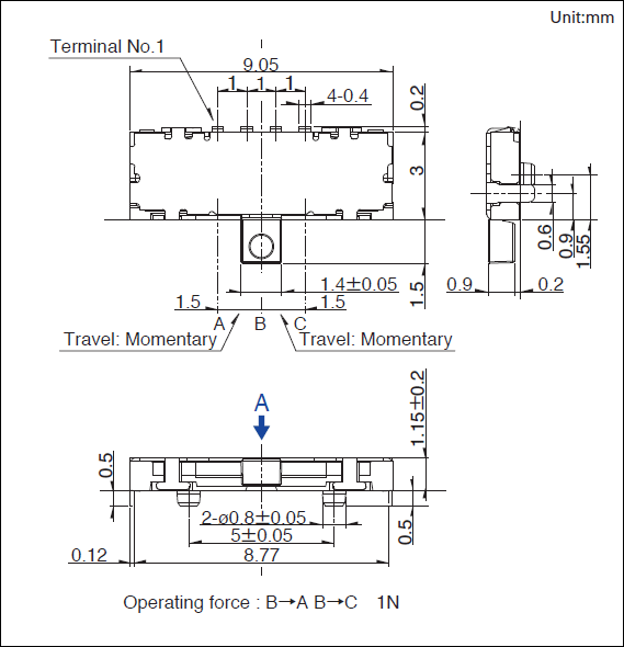 - 开关操作时,如果施加规定以上的负载,开关将有被损坏的可能。请注意不要在开关上施加规定以上的力。