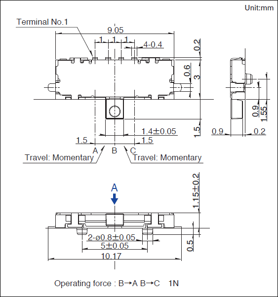- 开关操作时,如果施加规定以上的负载,开关将有被损坏的可能。请注意不要在开关上施加规定以上的力。