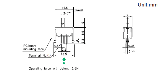 - 开关操作时,如果施加规定以上的负载,开关将有被损坏的可能。请注意不要在开关上施加规定以上的力。