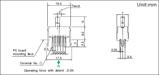 - 开关操作时,如果施加规定以上的负载,开关将有被损坏的可能。请注意不要在开关上施加规定以上的力。