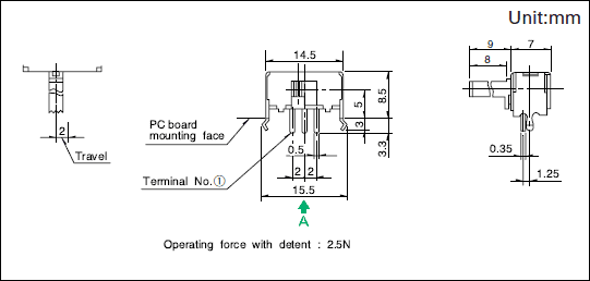 - 开关操作时,如果施加规定以上的负载,开关将有被损坏的可能。请注意不要在开关上施加规定以上的力。