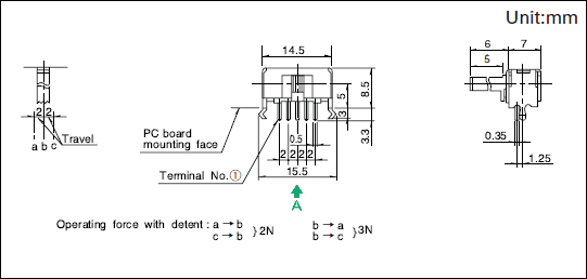 - 开关操作时,如果施加规定以上的负载,开关将有被损坏的可能。请注意不要在开关上施加规定以上的力。