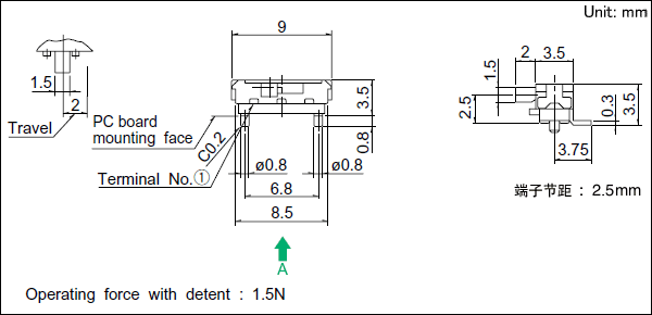 - 开关操作时,如果施加规定以上的负载,开关将有被损坏的可能。请注意不要在开关上施加规定以上的力。