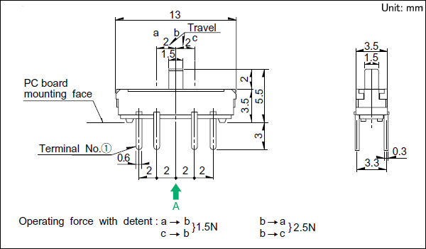 - 开关操作时,如果施加规定以上的负载,开关将有被损坏的可能。请注意不要在开关上施加规定以上的力。