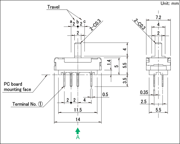 - 开关操作时,如果施加规定以上的负载,开关将有被损坏的可能。请注意不要在开关上施加规定以上的力。