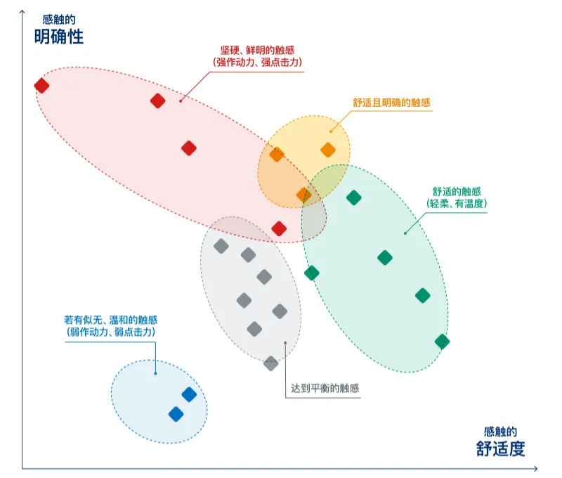 另一方面,感性并非新生的概念,例如“高级感”,需要与以往接触过的高档事物进行比较才能形成认知。因此,定量评估固然是关键,但与市面上其他产品之间的共通性同样重要。