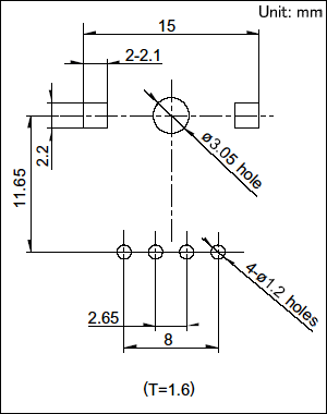 - If you use a through-hole PC board or a PC board thinner or thicker than the recommendation, here may be greater heat stress. Verify the soldering conditions thoroughly before use.