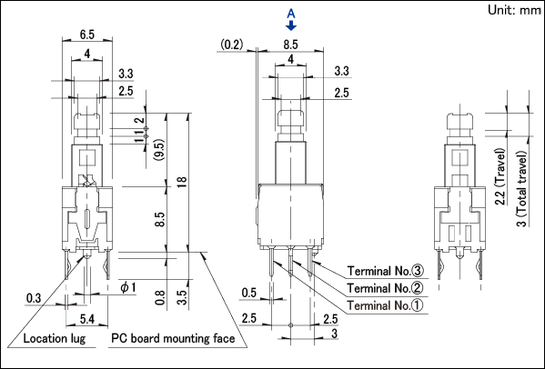 - Use of the switches in a dusty environment may lead the dusts entering through the openings and cause imperfect contact or malfunction. Take this into account for set design.