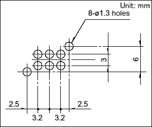 - If you use a through-hole PC board or a PC board thinner or thicker than the recommendation, here may be greater heat stress. Verify the soldering conditions thoroughly before use.