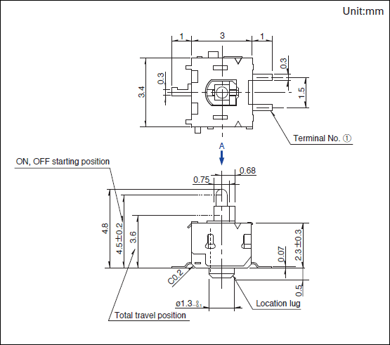 - Use of the switches in a dusty environment may lead the dusts entering through the openings and cause imperfect contact or malfunction. Take this into account for set design.