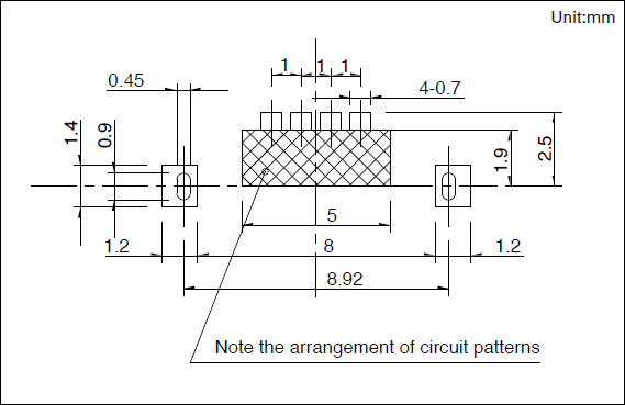 - If you use a through-hole PC board or a PC board thinner or thicker than the recommendation, here may be greater heat stress. Verify the soldering conditions thoroughly before use.