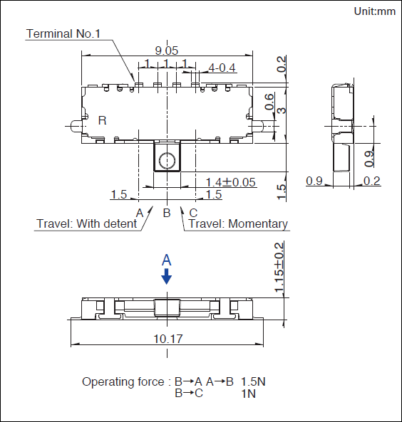 - 3.0×9.05×1.15mm