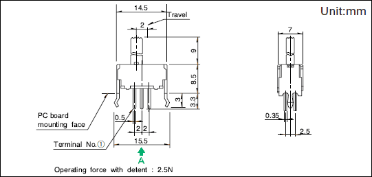 - Use of the switches in a dusty environment may lead the dusts entering through the openings and cause imperfect contact or malfunction. Take this into account for set design.