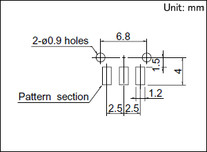 - If you use a through-hole PC board or a PC board thinner or thicker than the recommendation, here may be greater heat stress. Verify the soldering conditions thoroughly before use.