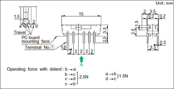 - Solder the switches with detent at the detent position. Soldering switches fixed at the center of the detent may deform the detent mechanisms.