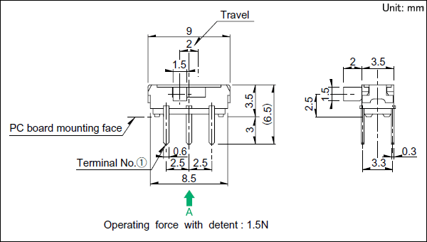 - Use of the switches in a dusty environment may lead the dusts entering through the openings and cause imperfect contact or malfunction. Take this into account for set design.