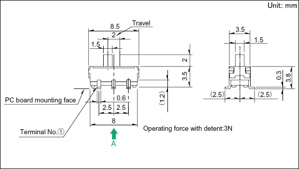 - Use of the switches in a dusty environment may lead the dusts entering through the openings and cause imperfect contact or malfunction. Take this into account for set design.