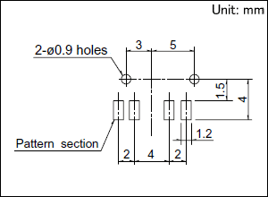 - If you use a through-hole PC board or a PC board thinner or thicker than the recommendation, here may be greater heat stress. Verify the soldering conditions thoroughly before use.