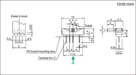 - Use of the switches in a dusty environment may lead the dusts entering through the openings and cause imperfect contact or malfunction. Take this into account for set design.