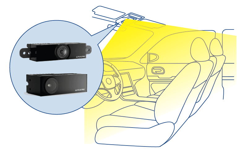 2種類の小型カメラを活用する事で、ドライバー、同乗者をモニタリングし、安全で快適な車室内環境を提供するインキャビンセンシング。RGB-IRカメラ※1では視聴用のColor映像を、TOF-IRカメラ※2では測距用のDepth画像を、それぞれ認識用の赤外線(IR)画像を同時に撮影します。これにより、暗所でも人物の動きや位置を正確に把握でき、車室内への子供置き去り防止や、搭乗者の耳の位置を測定し、最適な音響を提供するなど、安全と空間価値向上に貢献します。