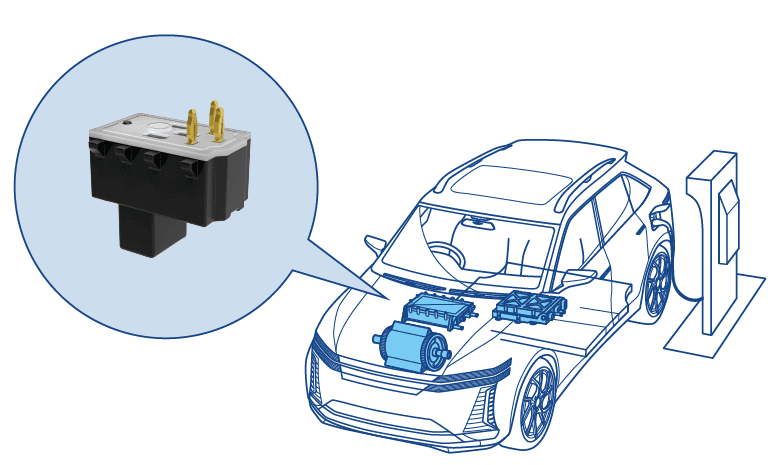 高精度磁気素子を採用したコアレスタイプの電流センサー。外付けの電流センサーに比べ、体積比は1/6となり、小型、軽量化を実現。搭載省スペース化により、セット設計におけるレイアウトの自由度が向上します。組込み後、補正不要で使用できるため、工程費の削減が可能です。コンパクトながらも大電流(~2000A)のセンシングに強みを持ち、EVやハイブリッドカーのインバーター、バッテリー部などへ搭載が可能です。