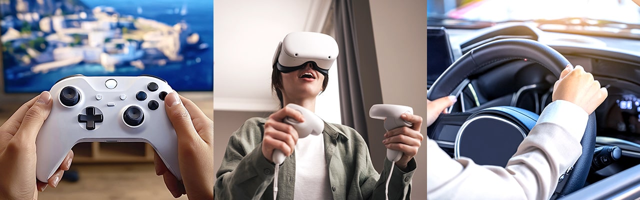 ゲームやVRから自動車まで多くの市場に広がるhaptic reactor。お客様の要求に応える優れた振動感触や高い総合力により、さまざまな機器で価値を生み出していきます。
