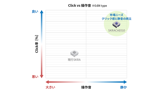 静かな環境でも確実な操作を可能に。数値で裏付けられた静音タクトスイッチ®の選択