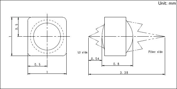 - 標準レンズをお客様指定形状、寸法のホルダーに溶接固定するものです。