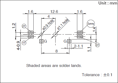 - 当製品は、赤外線のみのリフロー炉では、はんだが付かない場合がありますので温風リフロー炉または、赤外線+ 温風リフロー炉で、ご使用ください。