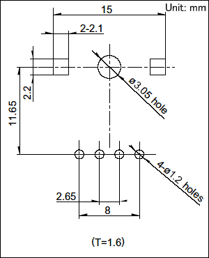 - スルーホールのプリント基板および推奨板厚以外の基板をご使用される場合は、 推奨基板よりも熱ストレスの影響が大きくなりますので、 はんだ付け条件については事前に十分な確認をしてください。