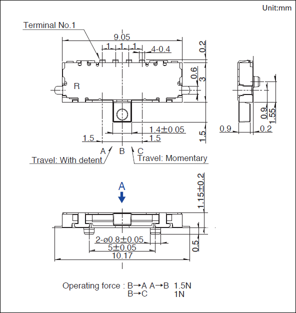 - スイッチ操作時に規定以上の荷重が加わるとスイッチが破損する場合があります。 スイッチに規定荷重以上の力が加わらないようにご注意ください。