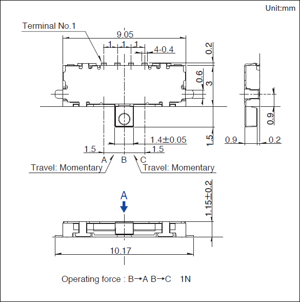 - スイッチ操作時に規定以上の荷重が加わるとスイッチが破損する場合があります。 スイッチに規定荷重以上の力が加わらないようにご注意ください。