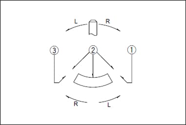 - 基準面より、規定の曲げモーメントを互いに180°異なる方向から軸に直角に加えて、基準面から規定の位置における振れの大きさを測定する。