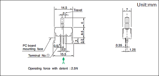- スイッチを使用するセットの周辺部材から腐食性ガスが発生しますと、 接触不良などの不具合の原因になるおそれがありますので、 事前に十分ご確認ください。