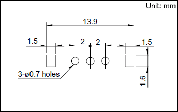 - 端子をはんだ付けされる場合、端子に荷重が加わりますと条件により、がた、変形および電気的特性劣化のおそれがありますのでご注意ください。