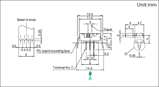 - クリック付タイプは、 クリック位置ではんだ付けください。 クリック中点止めされた状態ではんだ付けされますと、 クリック機構部が変形することがあります。