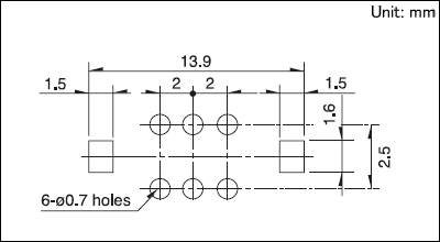 - 端子をはんだ付けされる場合、端子に荷重が加わりますと条件により、がた、変形および電気的特性劣化のおそれがありますのでご注意ください。