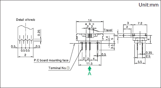 - クリック付タイプは、 クリック位置ではんだ付けください。 クリック中点止めされた状態ではんだ付けされますと、 クリック機構部が変形することがあります。